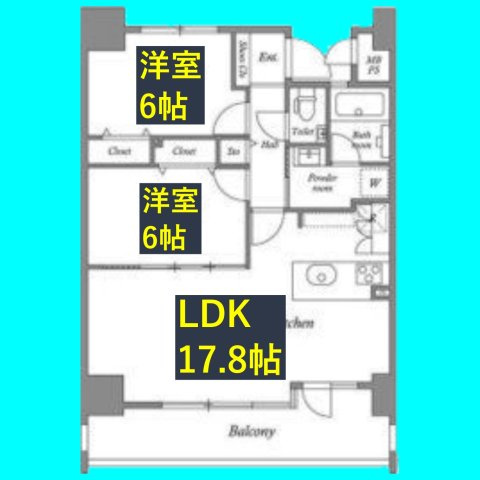 洋室 6.0帖/洋室 6.0帖/LDK 17.8帖 - 向き